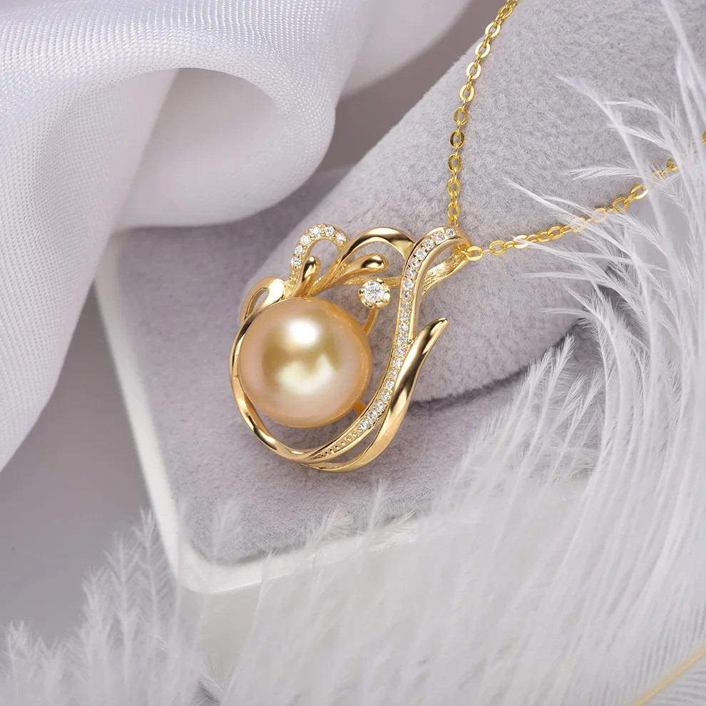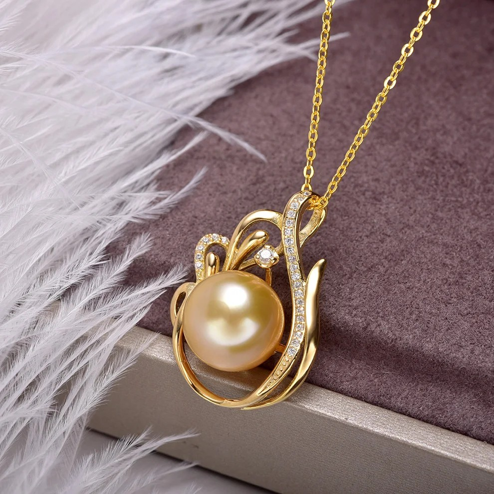 11-12mm 925 Silver Saltwater Gold Pearl Pendant
