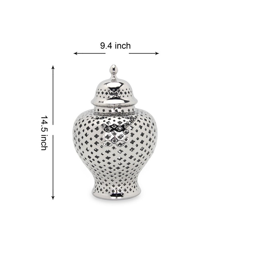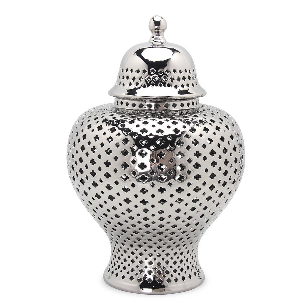 15" Silver Pierced Urn Ceramic Ginger Jar