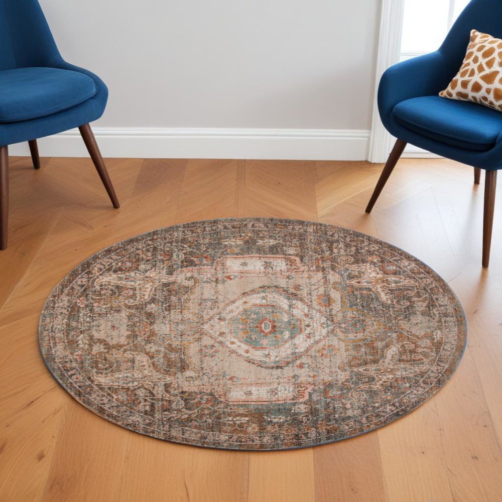 2' X 3' Beige Gray and Taupe Medallion Power Loom Area Rug
