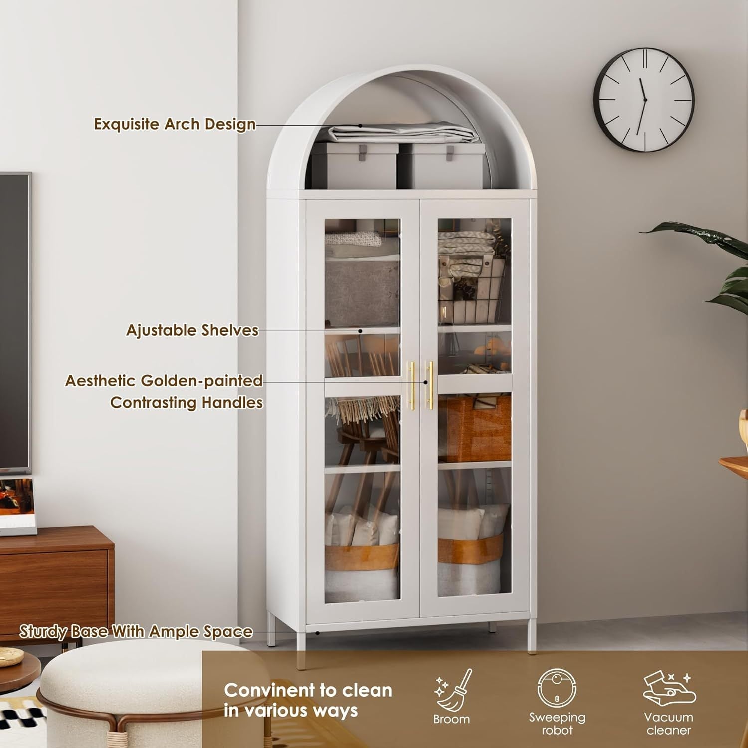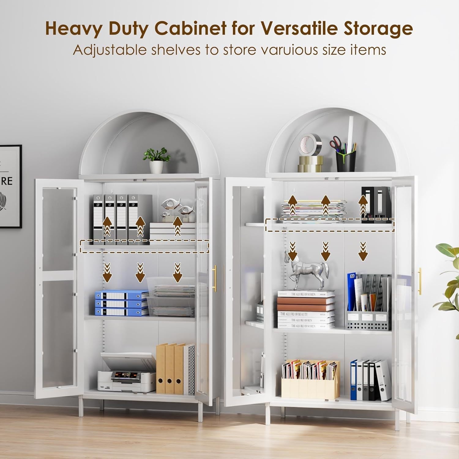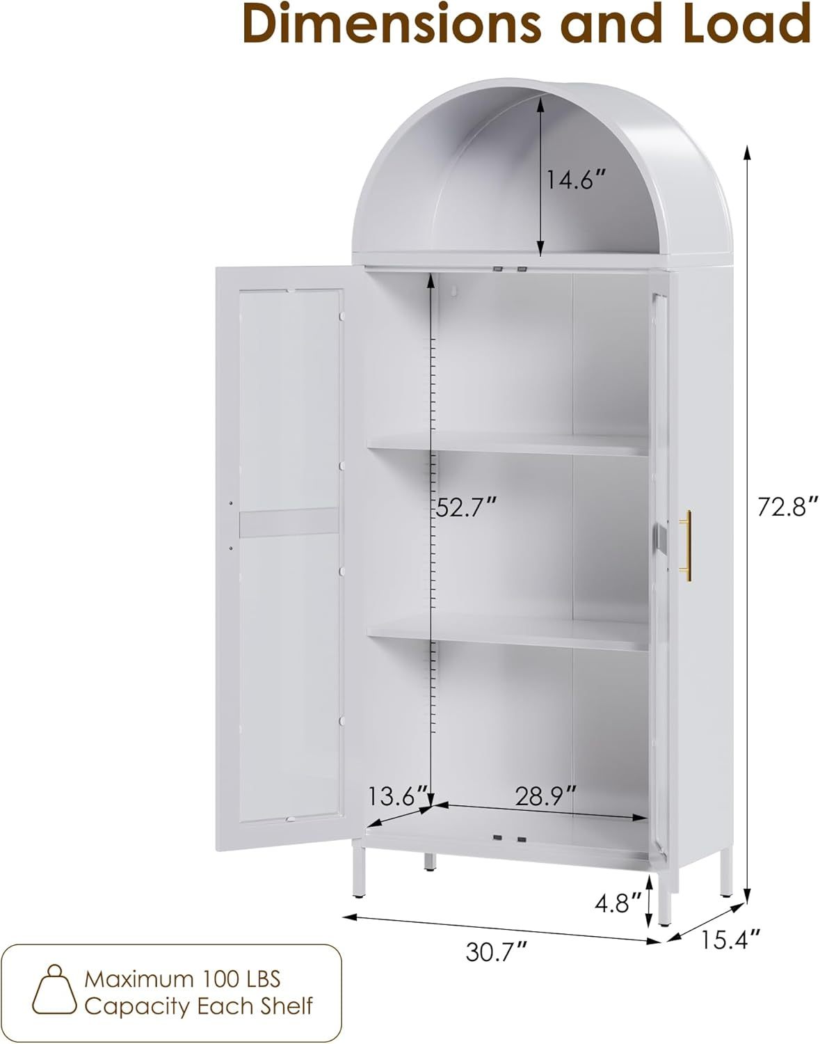 73 In Tall Metal Arched Cabinet, Kitchen Pantry Cabinet With Glass