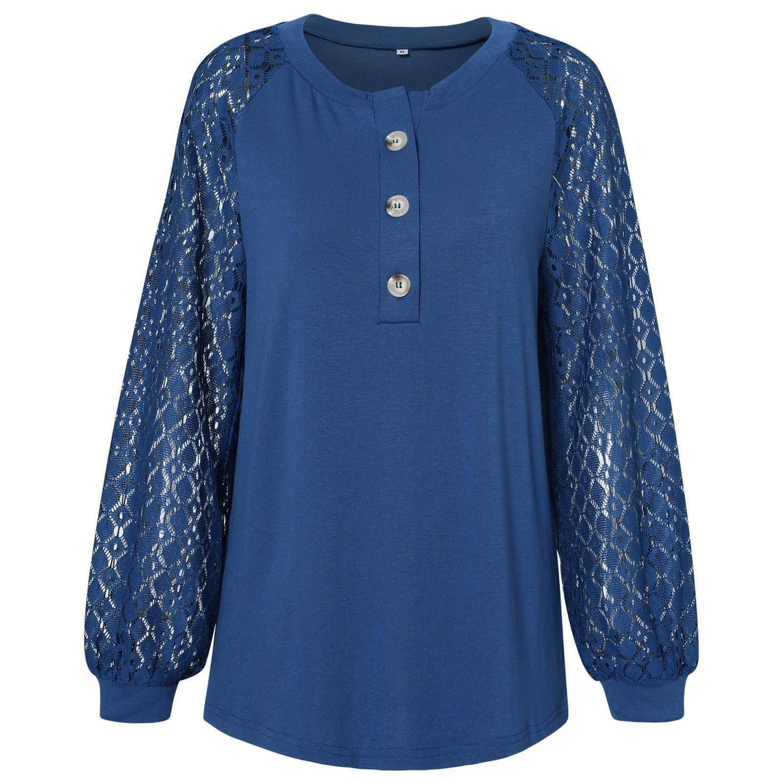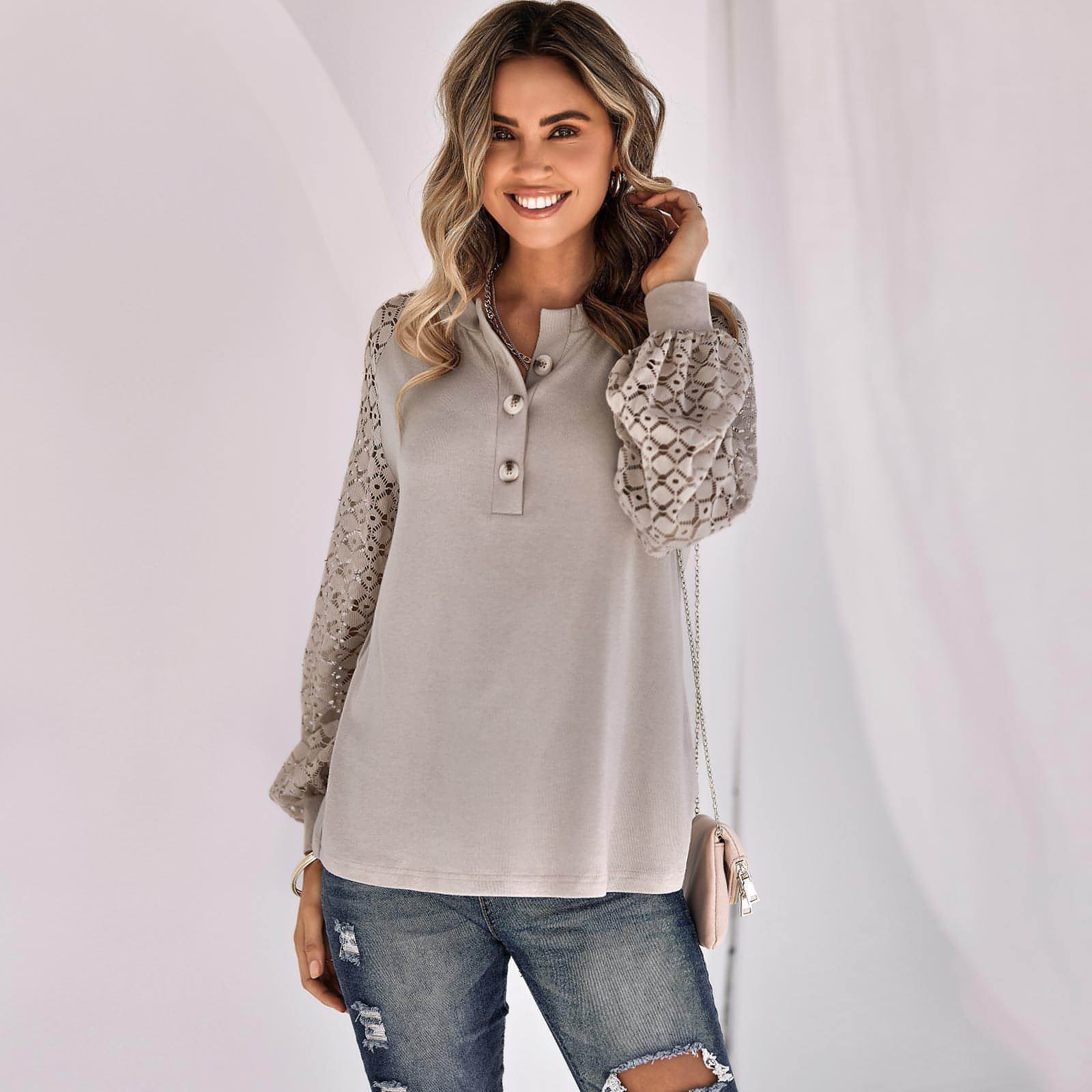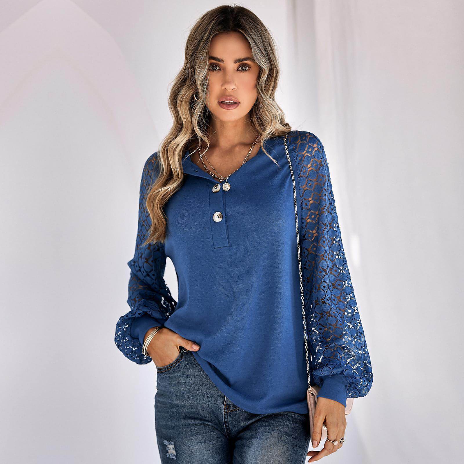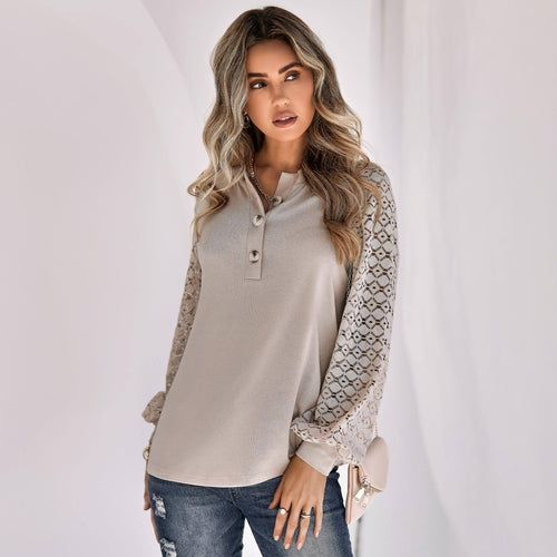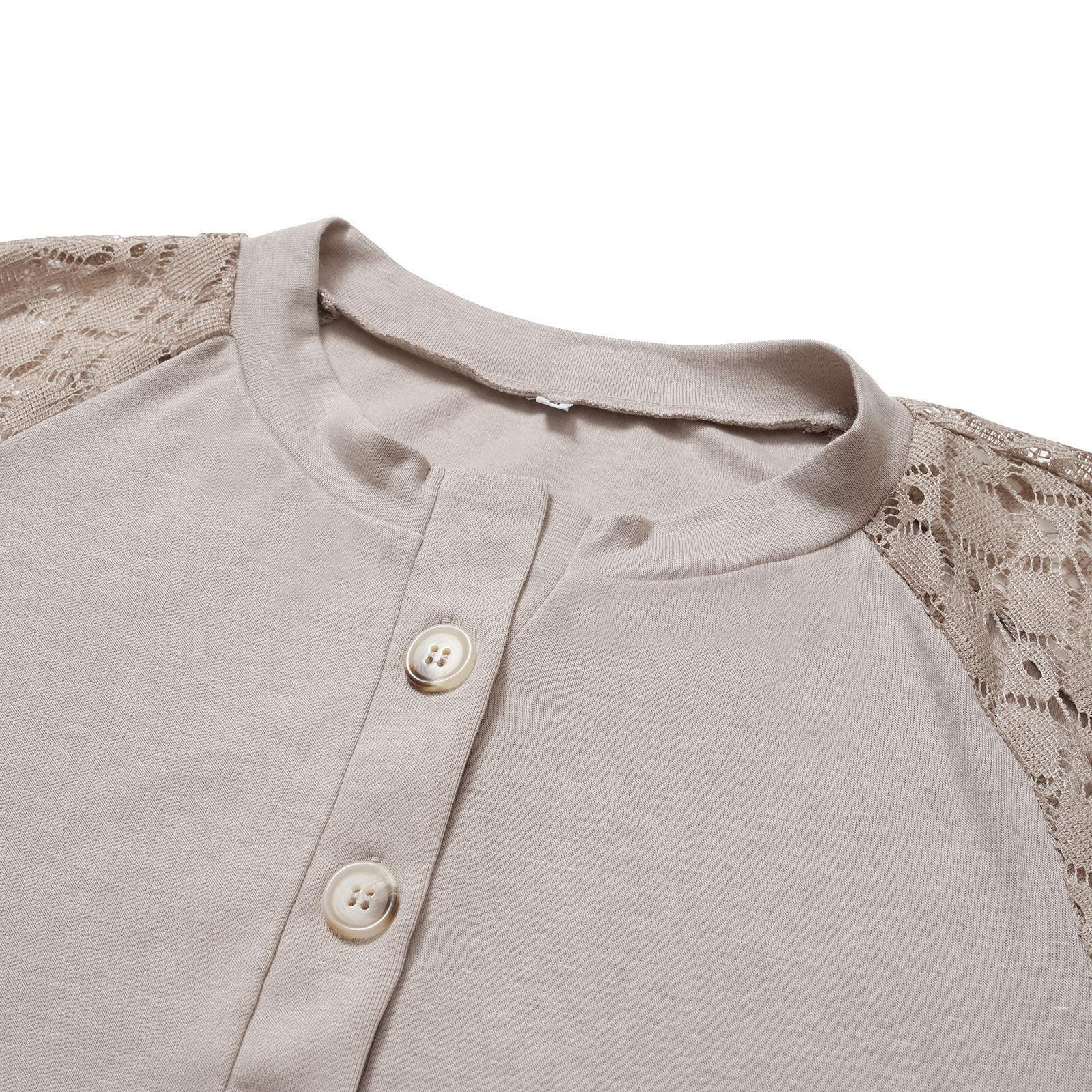 Casual Lace Button Top Women T-Shirt