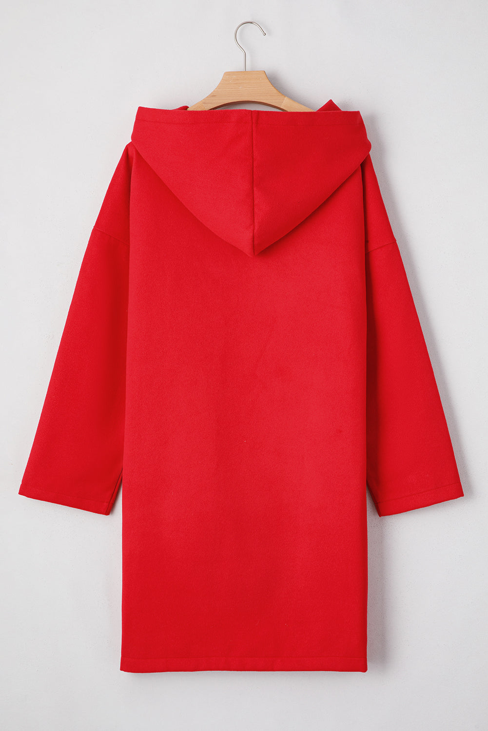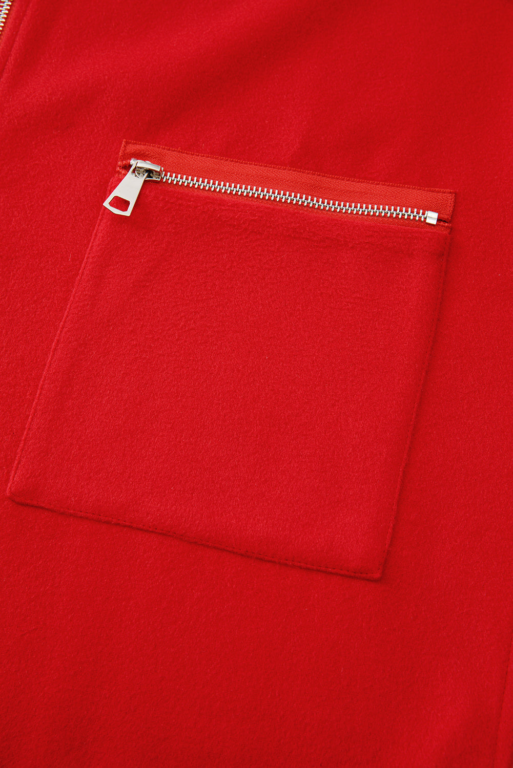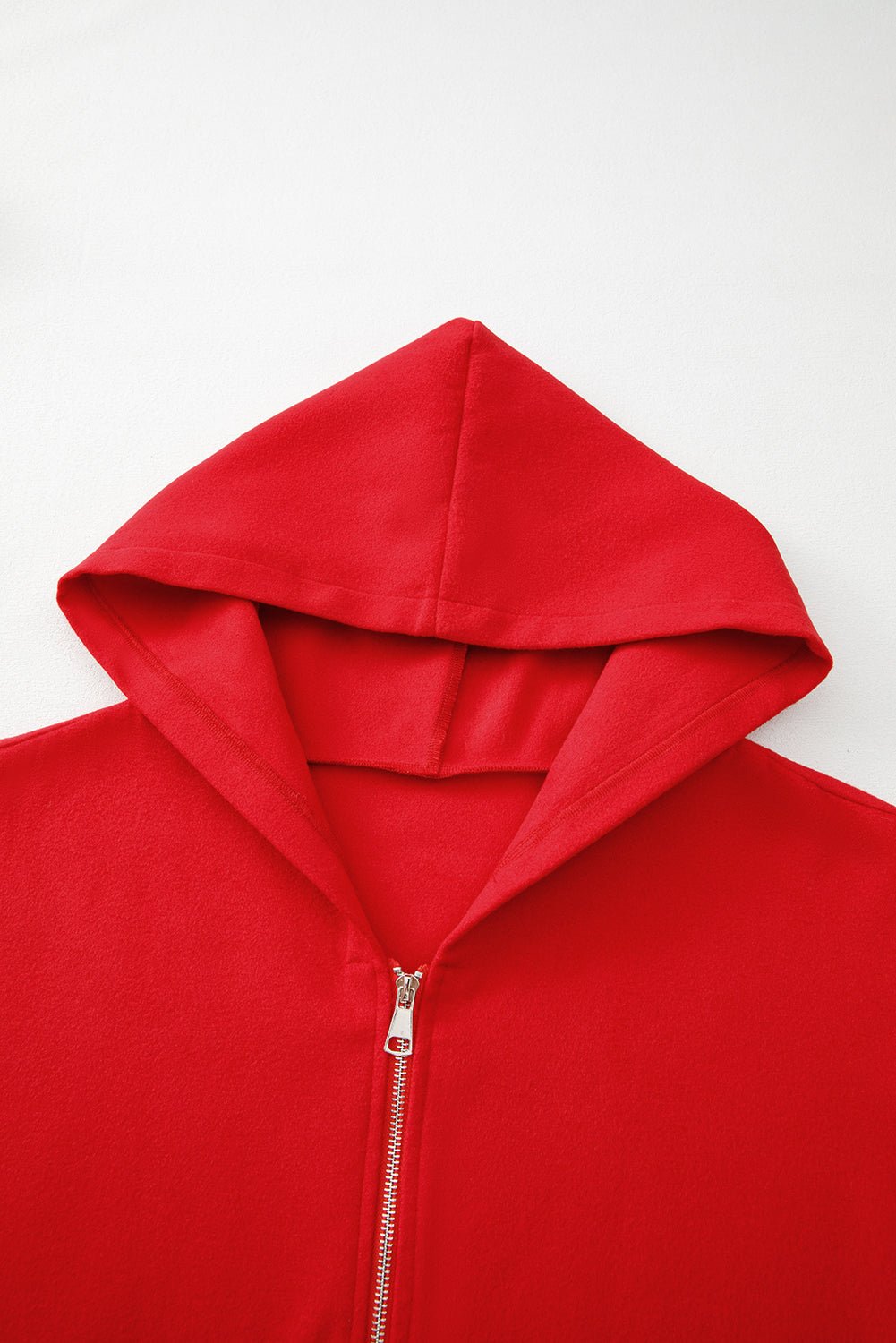 Fiery Red Solid Color Casual Zip up Hooded Coat