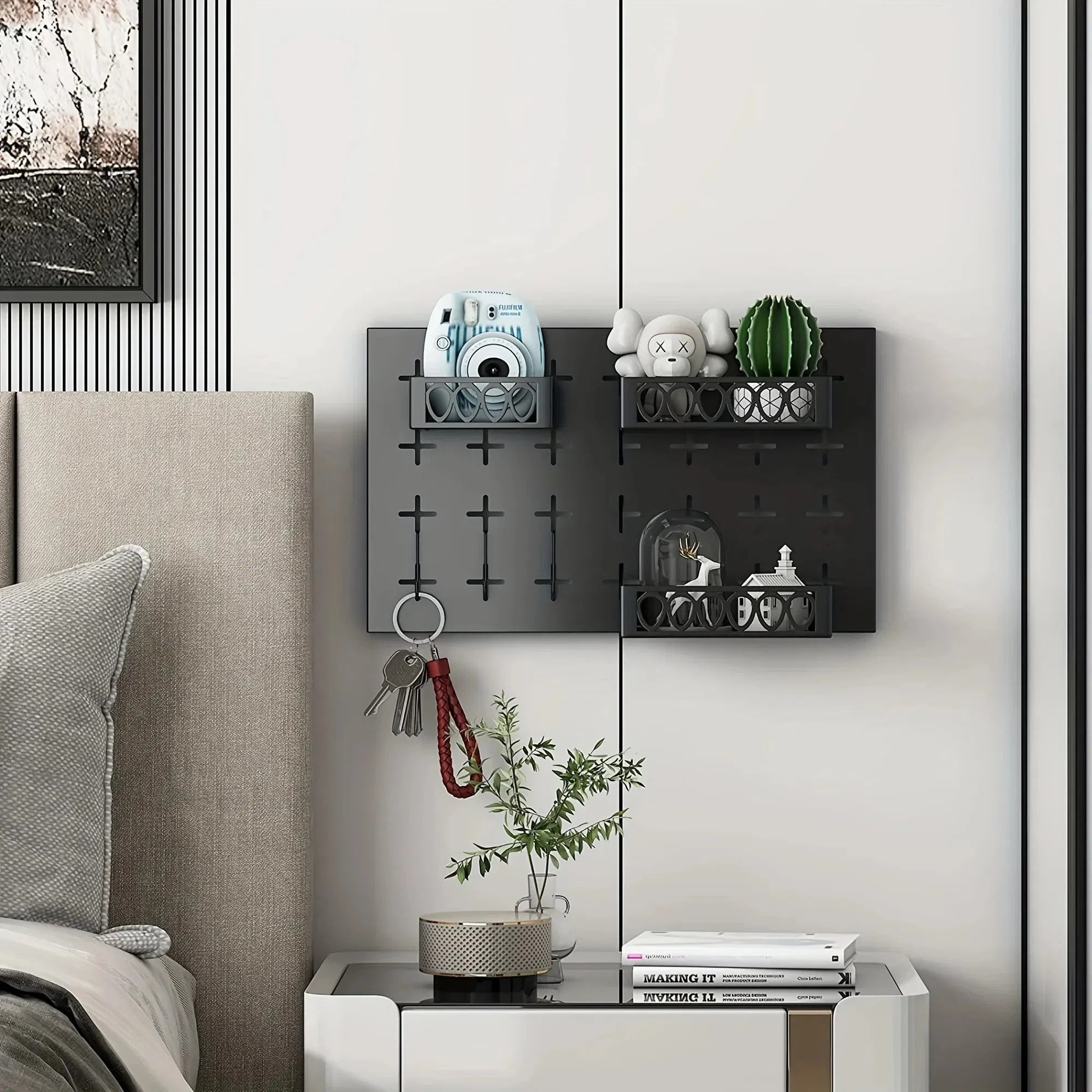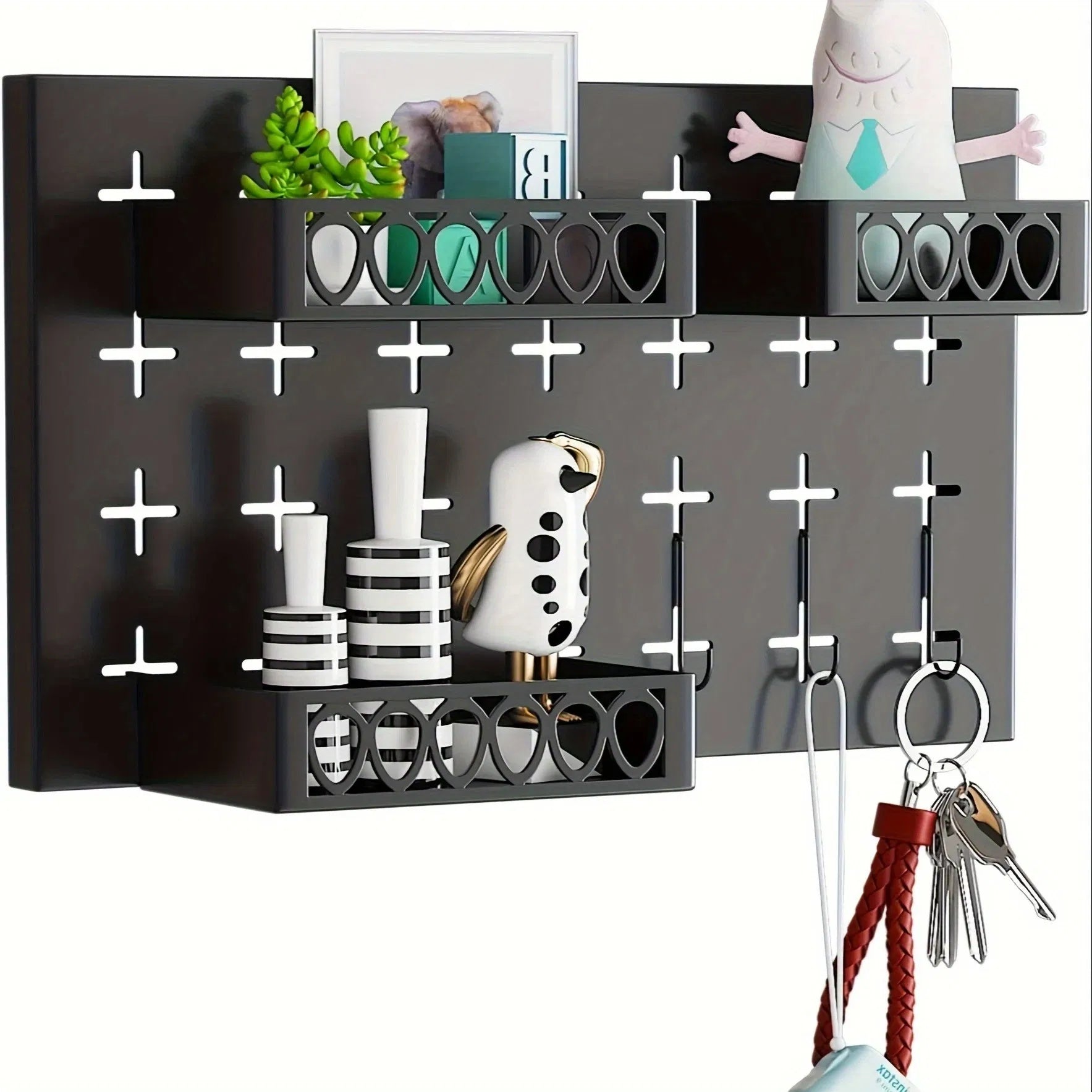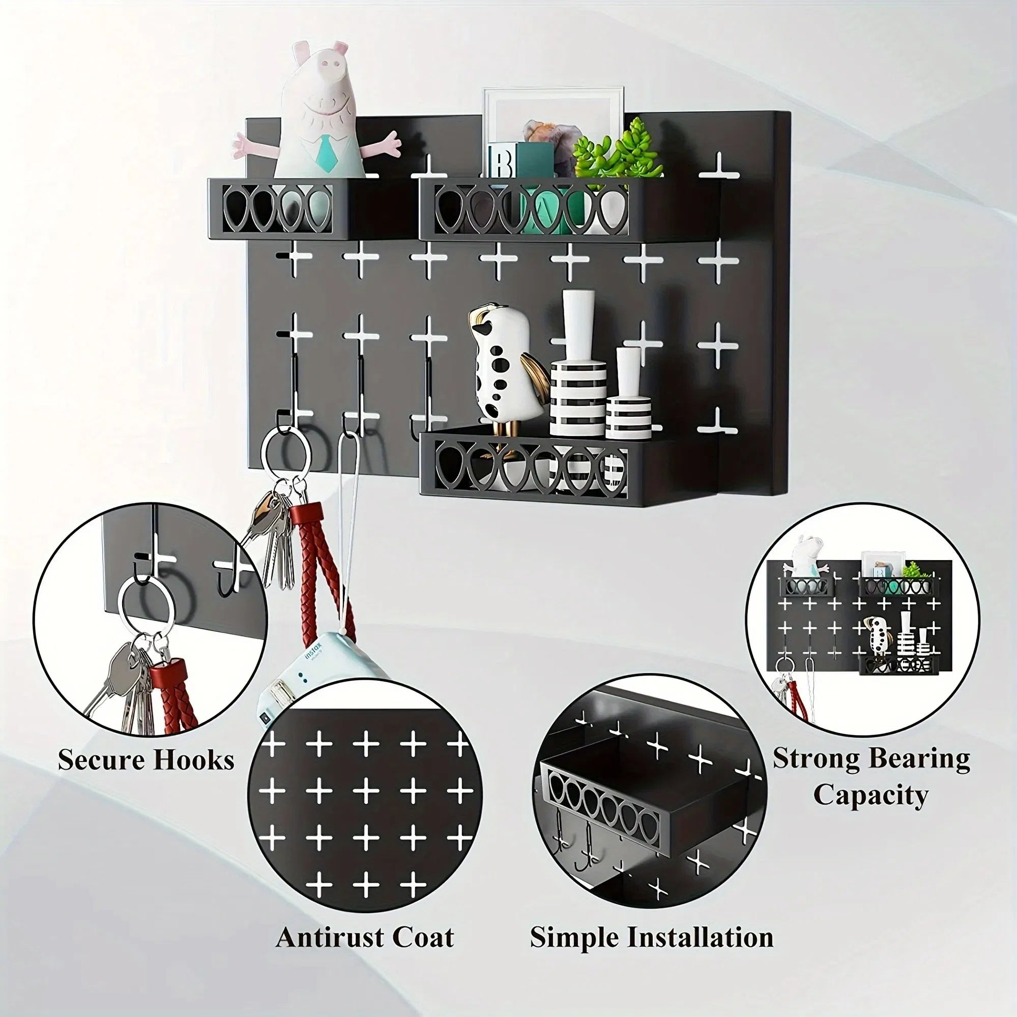 Gold Key Hook With 3 Adjustable Baskets And 3 Hooks For Wall Storage
