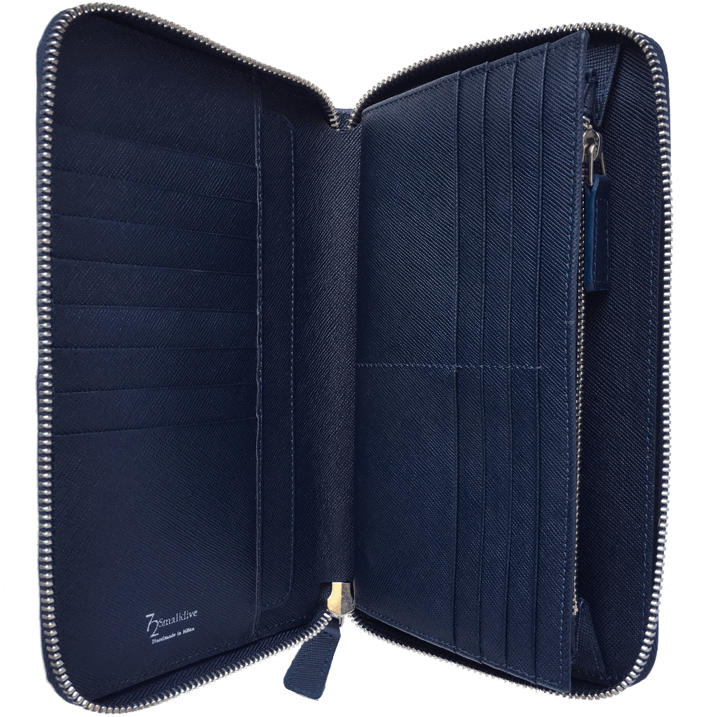 16 Credit Card Saffiano Organizer Zipped Wallet Blue