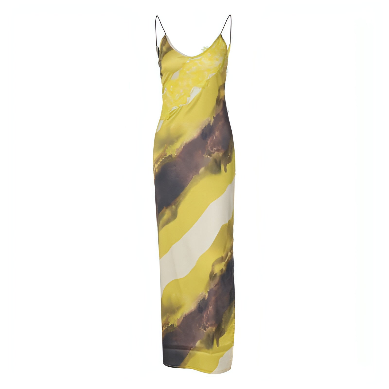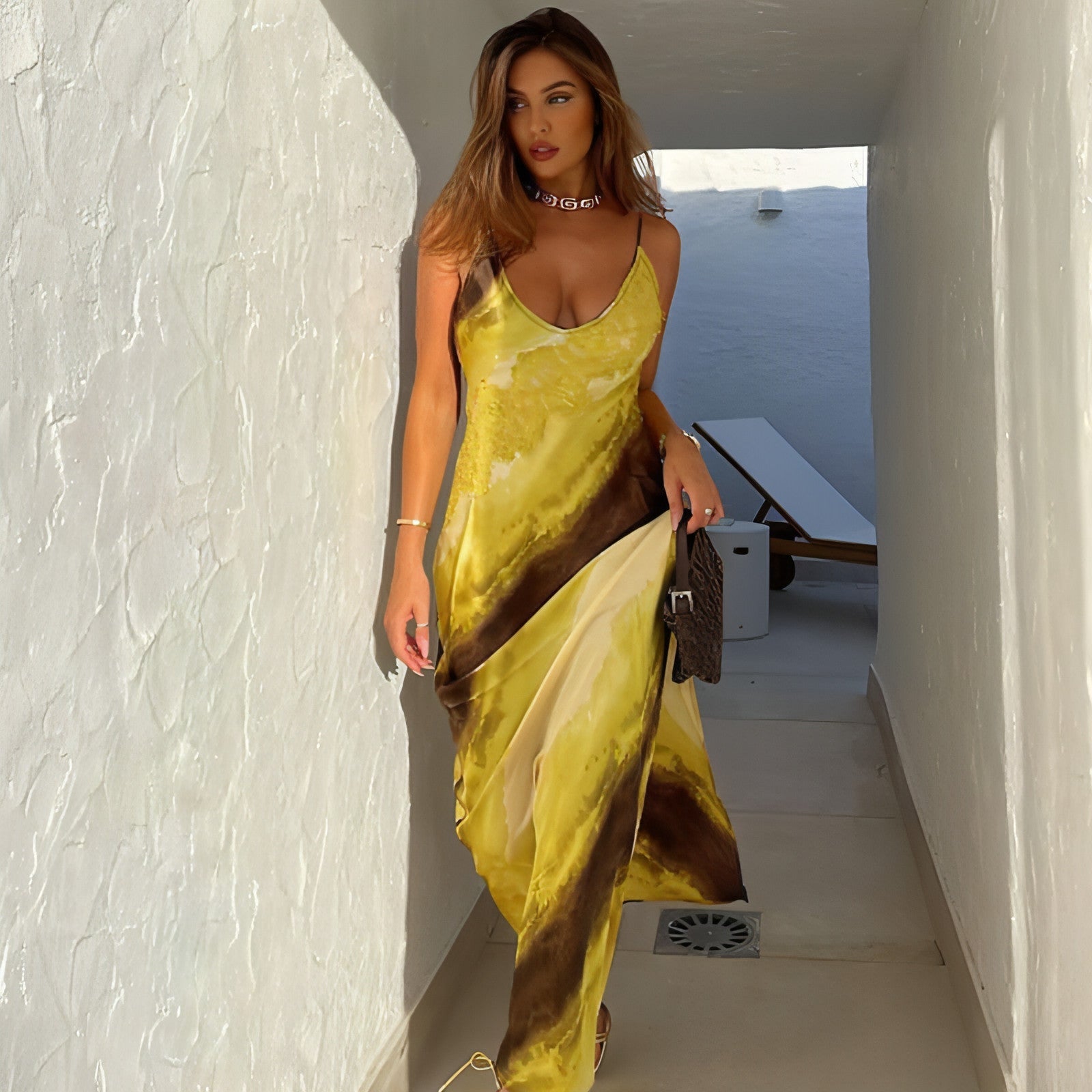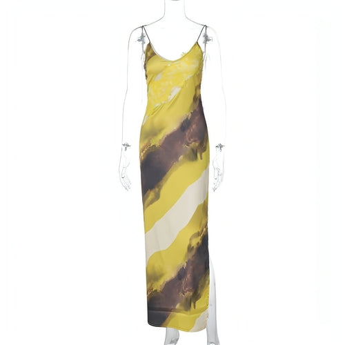 Women's Fashion Printed V-neck Backless Slit Sling Dress
