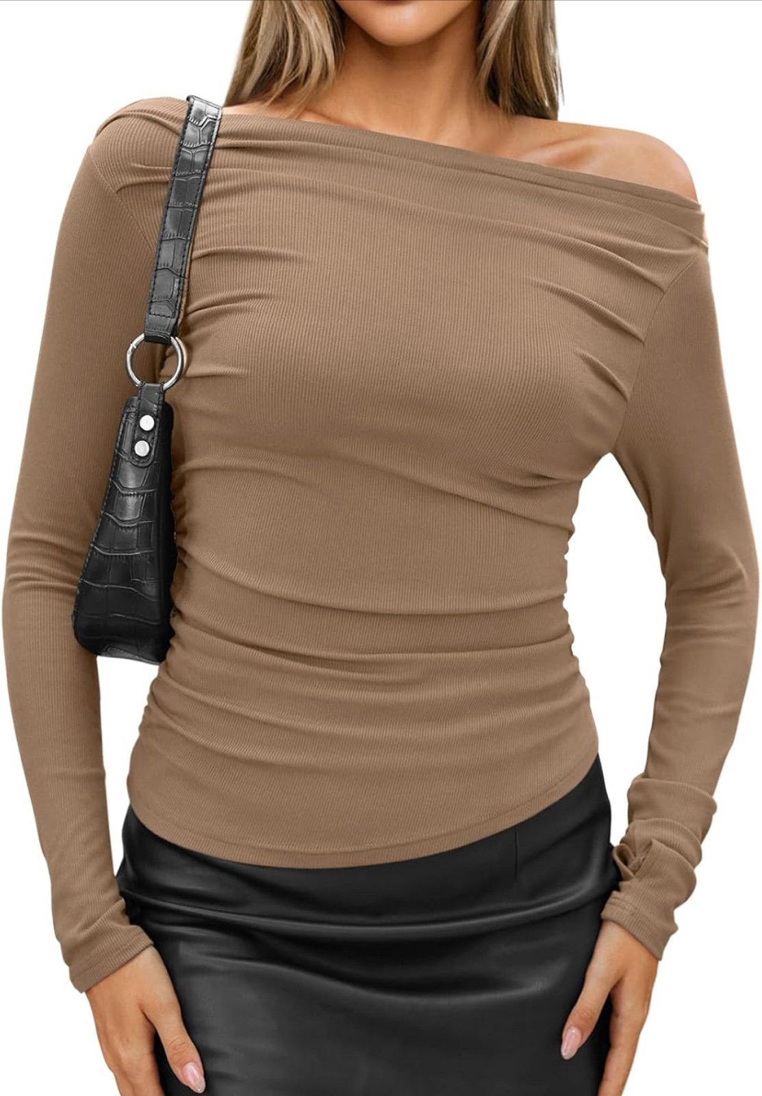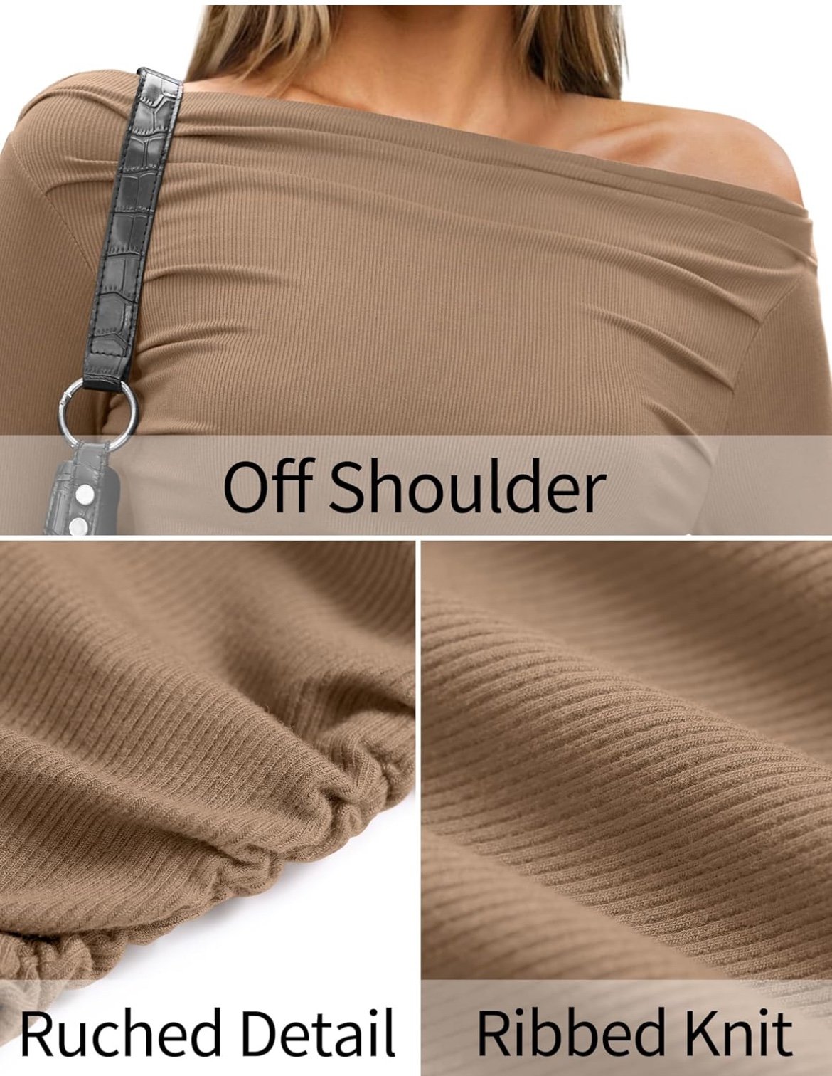 Women's Long Sleeve Off Shoulder Tops Sexy Going Out Slim Fit Knit Asy